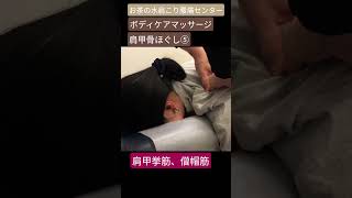 大切なパートは左右の股関節周りと肩甲骨まわり、腕から首のエリアから胸部にかけてでした。双方とも本来のスムースな動きが制限され、可動域の減少をまねいてました。